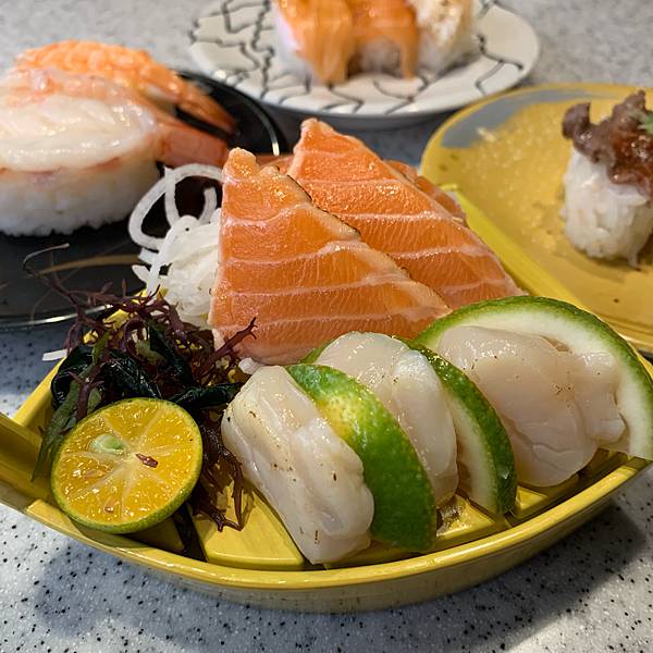 干貝本身新鮮度還不錯,鮭魚炙燒後的香氣也蠻加分的️如果怕腥,旁邊也有檸檬可以搭配使用!